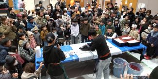参加者は当初の予想を大きく超え、33家族(子供さん37名)の集まりになり、カーペットのスペーが手狭となり、色違いでは有りましたが、2枚敷増し、それでも裸足で、大広間中を走り回り子供たちに十分な運動になったようです。