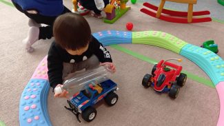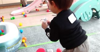 前夜の雪の影響で足元の悪い中、6組の親子さんが遊びに来てくれました。嬉しいことに4組が初めての方でした。始めは、いつもの通り準備して置いた遊具で、子どもたちは元気よく遊んでいました。